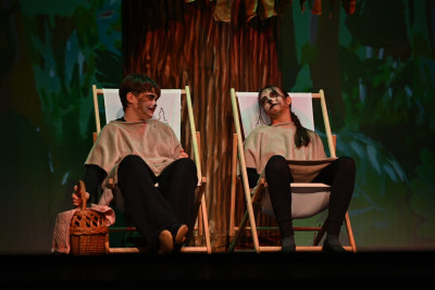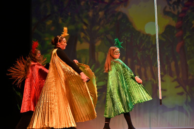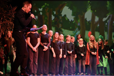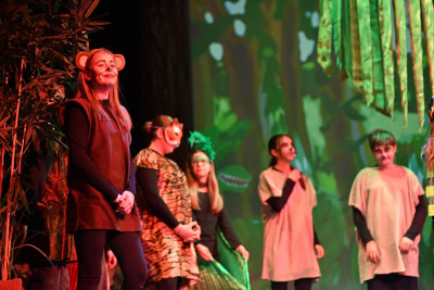 Für eine besonders eindrucksvolle Atmosphäre sorgte die Live-Musik, die von den schuleigenen Ensembles gestaltet wurde. Mit großem Engagement begleiteten die jungen Musikerinnen und Musiker die Aufführung. Auch gesanglich überzeugte die Produktion: Solistinnen und Solisten aus den Jahrgangsstufen 6 bis 8 sowie ein klangvoller Chor nahmen das Publikum mit auf eine Reise in die faszinierende Welt des Urwalds.